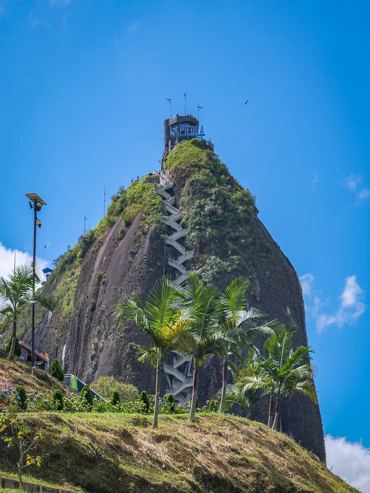 Der Guatapé-Fels ist ein 200 Meter hoher Granitmonolith in Kolumbien. In eine natürliche Spalte des Felsens wurden 708 steile Stufen eingebaut, die sich in Zickzackform bis zur Aussichtsplattform auf dem Gipfel winden. Von oben bietet sich ein atemberaubender Panoramablick über eine Seenlandschaft mit unzähligen Inseln. Das Bauwerk verbindet Naturwunder und menschliche Ingenieurskunst – und gilt als eine der eindrucksvollsten Treppenkonstruktionen Südamerikas.